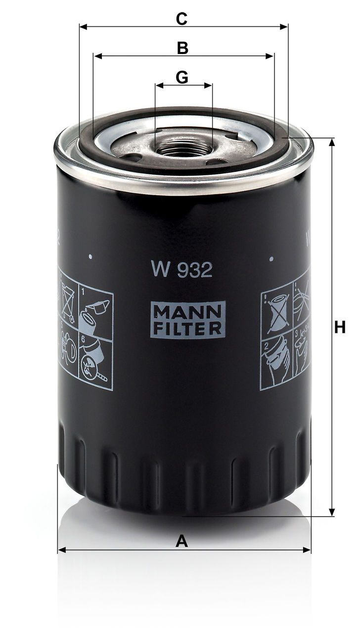 Mann Filter W 932 Oil Filter | Replaces the Bosch 0 451 103 246-48N