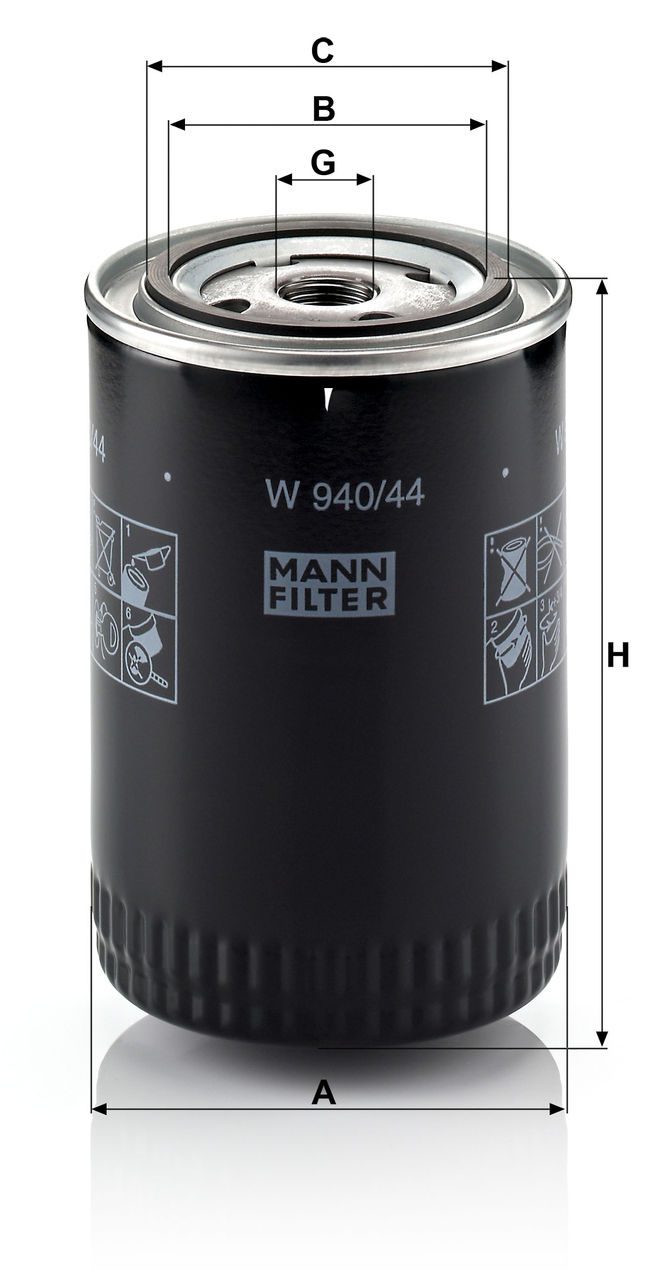 Mann Filter W 940/44 Oil Filter | Replaces the Bosch 0 451 103 346