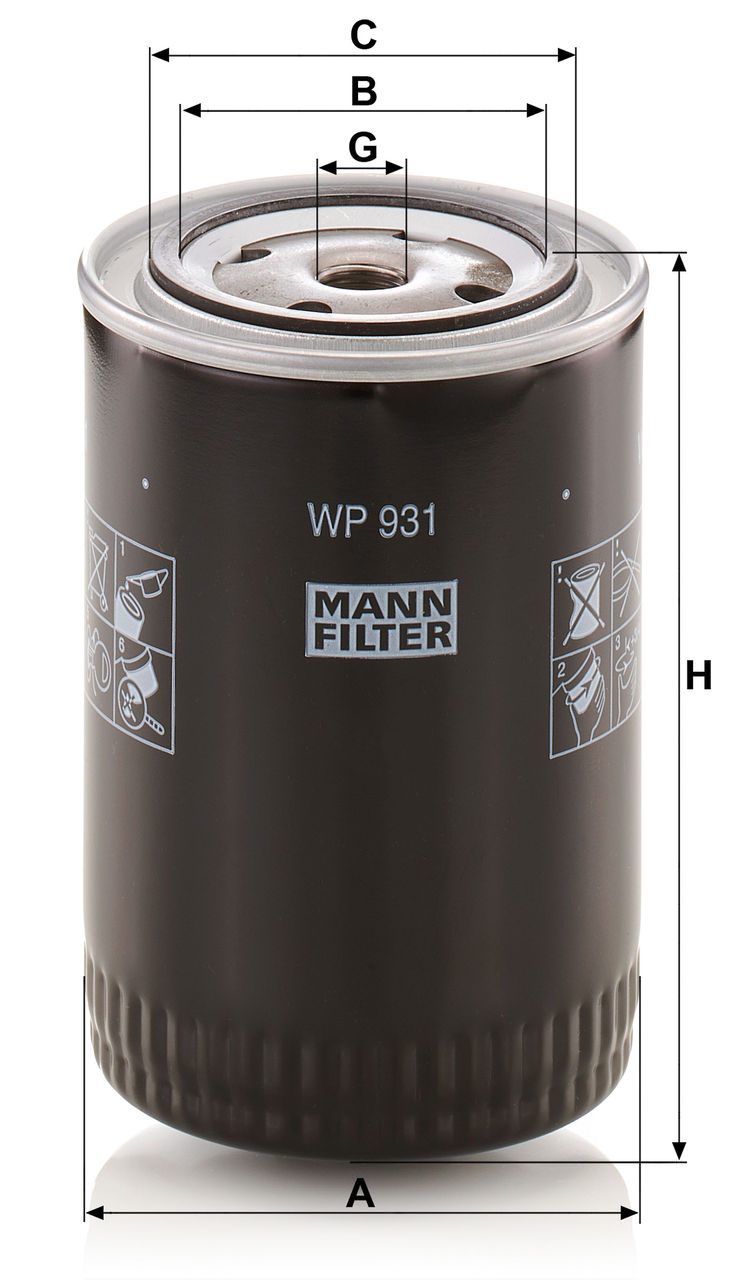 Mann Filter WP 931 Oil Filter | Replaces the Bosch 0 451 202 001