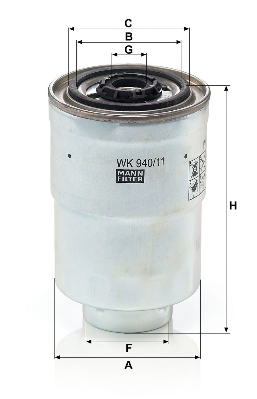 High-quality MANN-FILTER fuel filters remove unwanted and damaging dirt particles from the fuel and thus prevent possible damage. Thanks to the highest degree of separation and sealing, the fuel filter ensures functional reliability and optimum protection during the entire maintenance interval.Specification