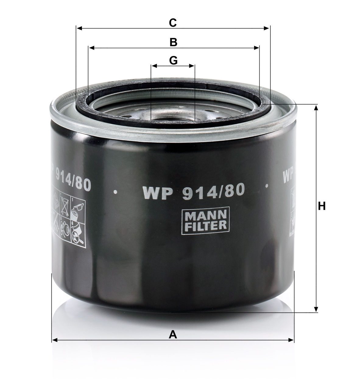 Mann Filter WP 914/80 Oil Filter | Replaces the Bosch 0 986 452 030