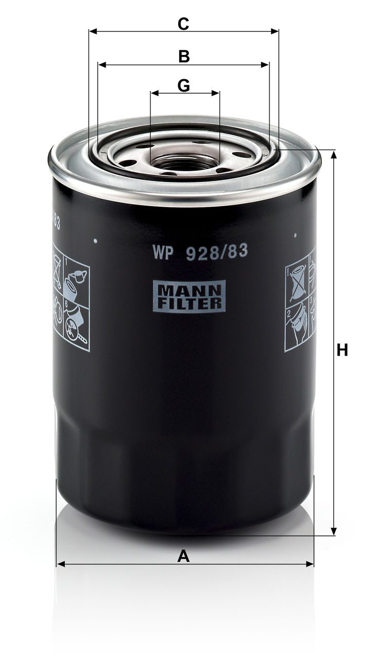 Mann Filter WP 928/83 Oil Filter | Replaces the Bosch 0 986 452 066