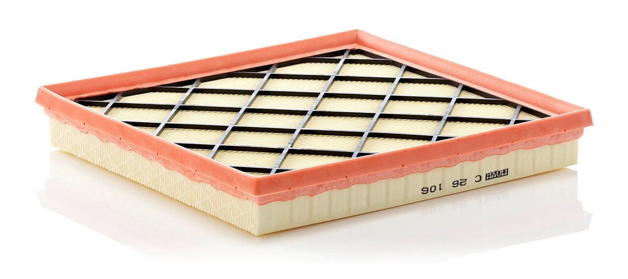 High-quality MANN-FILTER air filters for clean air intake and optimum protection for your engine, mass air flow sensor & other sensitive components / They meet requirements of modern engine technology. Highest dirt holding capacity and dirt separation efficiency, low flow resistance and high pleat stability ensure functional reliability during the entire service interval.