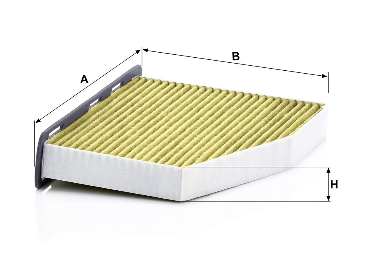 Biofunctional MANN-FILTER FreciousPlus cabin air filters - nearly 100% protection against nitrogen oxides, dust, allergens and mould - harmful gases and unpleasant odours are also eliminated and virus aerosols filtered. The three-layer filter technology absorbs almost 100% of allergens, reduces the growth of molds and bacteria by more than 98% and stops fine dust almost completely.Specification