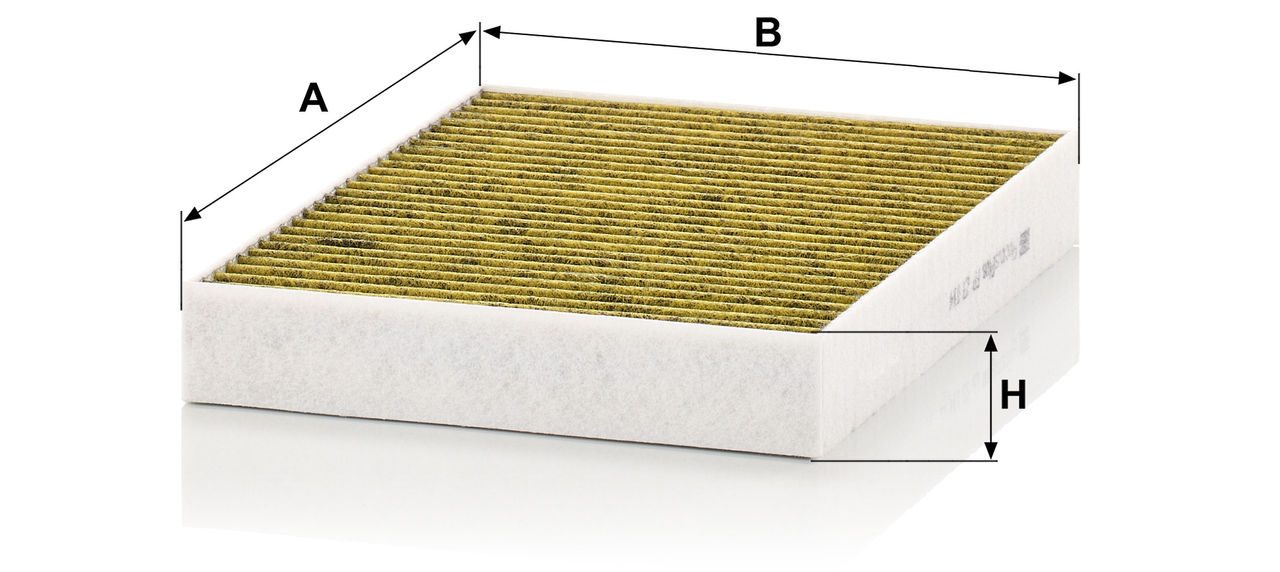 Biofunctional MANN-FILTER FreciousPlus cabin air filters - nearly 100% protection against nitrogen oxides, dust, allergens and mould - harmful gases and unpleasant odours are also eliminated and virus aerosols filtered. The three-layer filter technology absorbs almost 100% of allergens, reduces the growth of molds and bacteria by more than 98% and stops fine dust almost completely.Specification