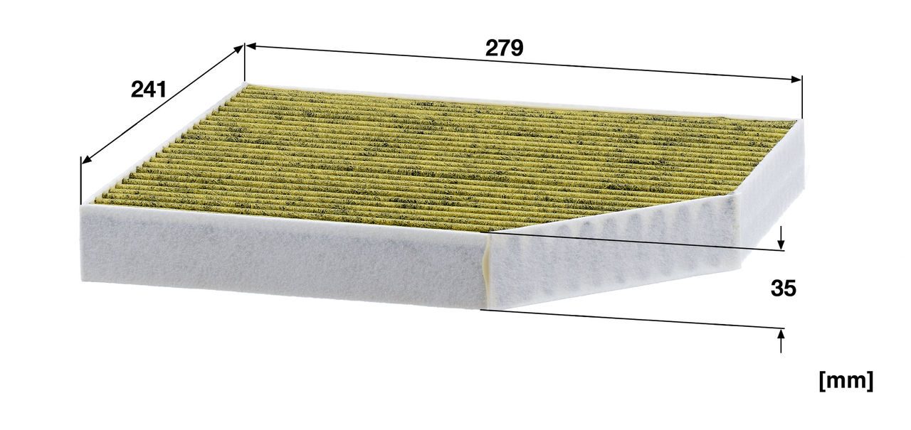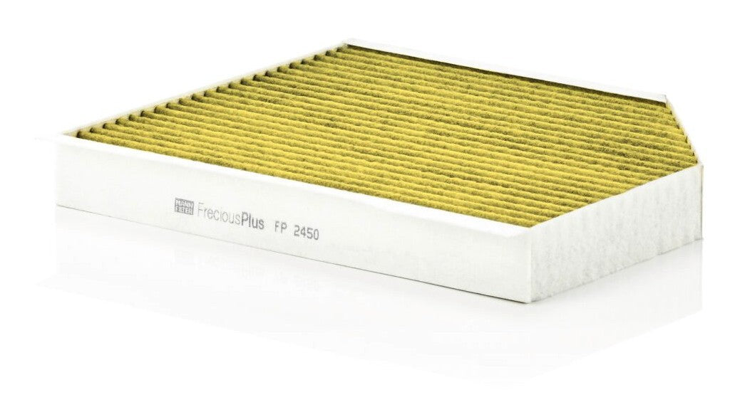 Biofunctional MANN-FILTER FreciousPlus cabin air filters - nearly 100% protection against nitrogen oxides, dust, allergens and mould - harmful gases and unpleasant odours are also eliminated and virus aerosols filtered. The three-layer filter technology absorbs almost 100% of allergens, reduces the growth of molds and bacteria by more than 98% and stops fine dust almost completely.Specification