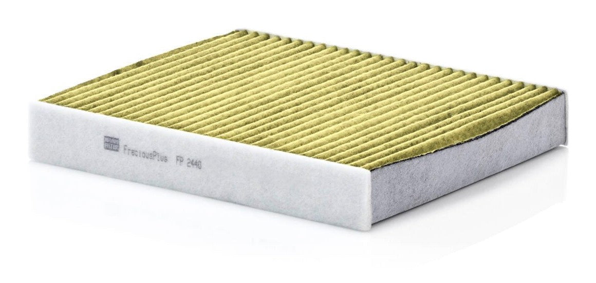 Biofunctional MANN-FILTER FreciousPlus cabin air filters - nearly 100% protection against nitrogen oxides, dust, allergens and mould - harmful gases and unpleasant odours are also eliminated and virus aerosols filtered. The three-layer filter technology absorbs almost 100% of allergens, reduces the growth of molds and bacteria by more than 98% and stops fine dust almost completely.Specification