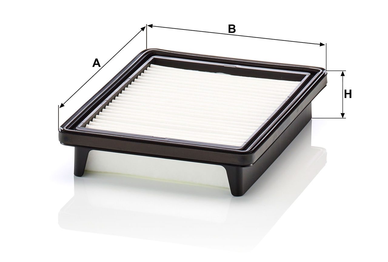 High-quality MANN-FILTER air filters for clean air intake and optimum protection for your engine, mass air flow sensor & other sensitive components / They meet requirements of modern engine technology. Highest dirt holding capacity and dirt separation efficiency, low flow resistance and high pleat stability ensure functional reliability during the entire service interval.