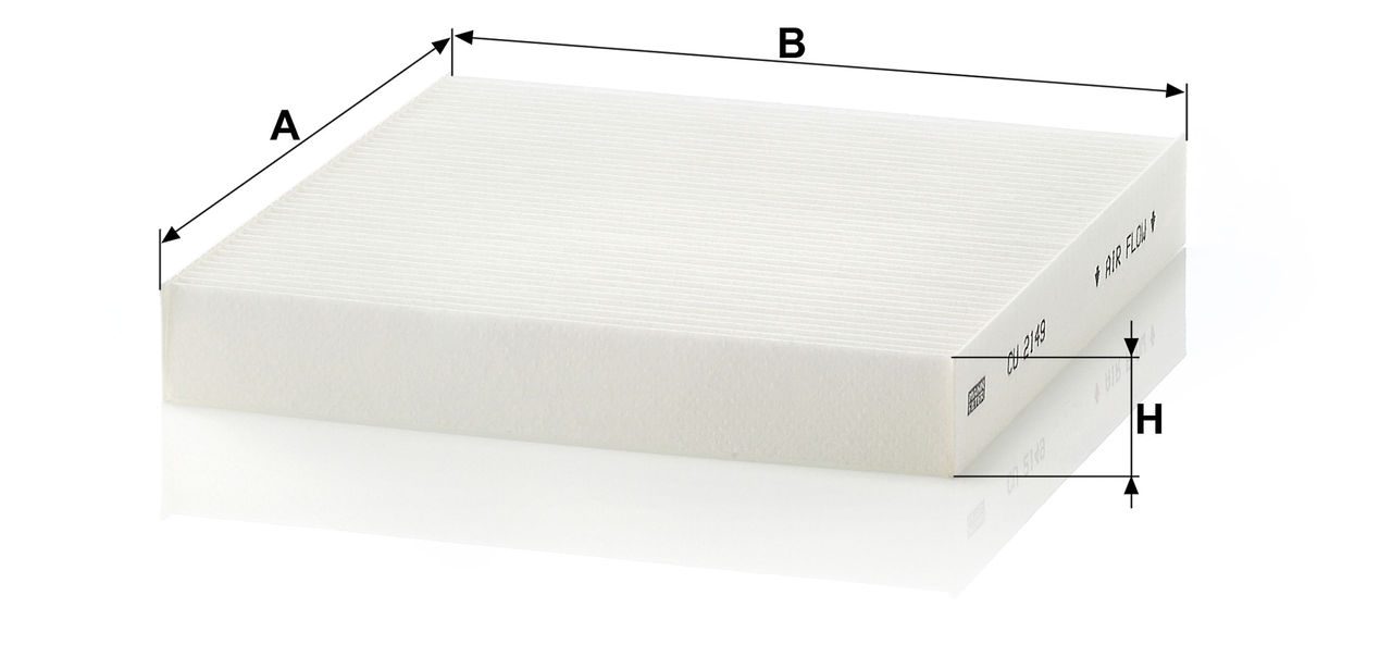 High-quality MANN-FILTER cabin filters offer almost 100% protection against particles such as pollen, diesel soot and tyre abrasion - for a feel-good climate in the vehicle interior and protection of the air conditioning system. Exact fit and perfect tightness ensure constant filtration performance during the entire service interval / Optimum vehicle interior ventilation due to the high air flow capacity.Specification