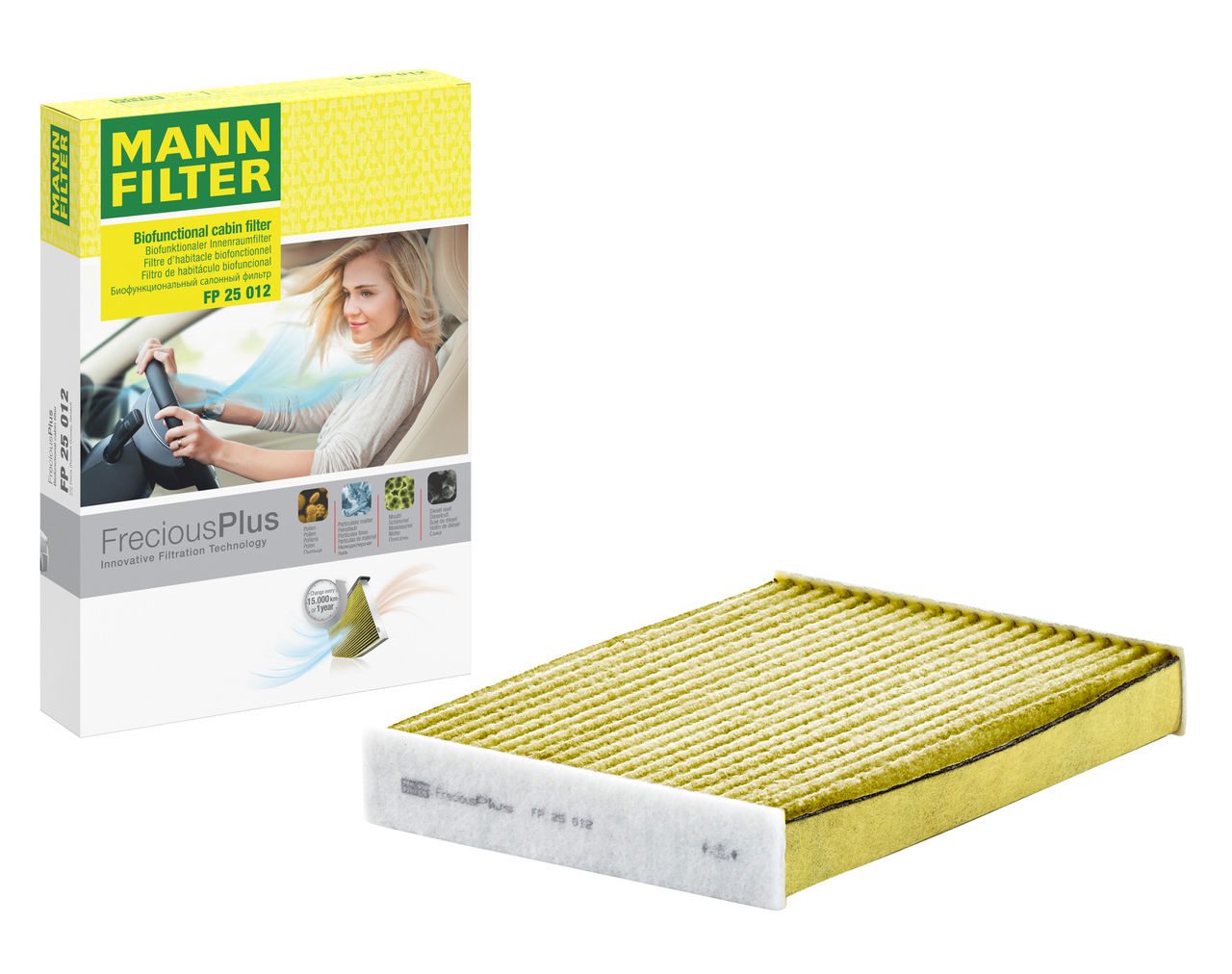 Biofunctional MANN-FILTER FreciousPlus cabin air filters - nearly 100% protection against nitrogen oxides, dust, allergens and mould - harmful gases and unpleasant odours are also eliminated and virus aerosols filtered. The three-layer filter technology absorbs almost 100% of allergens, reduces the growth of molds and bacteria by more than 98% and stops fine dust almost completely.Specification