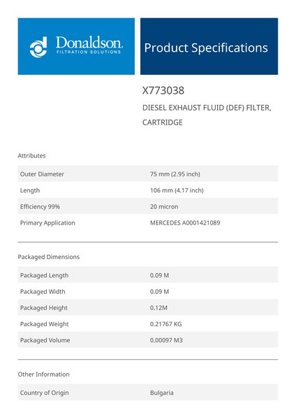 Genuine Donaldson X773038 Diesel Exhaust Fluid (Def) Filter, Cartridge is engineered to deliver reliable performance and durability across a wide range of applications. Designed with high-quality materials, it ensures consistent functionality while meeting demanding operational requirements.