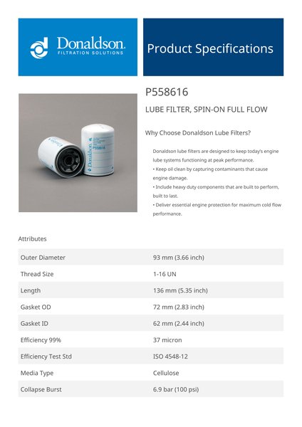 Why Choose Donaldson Lube Filters?Donaldson lube filters are designed to keep today’s engine lube systems functioning at peak performance.