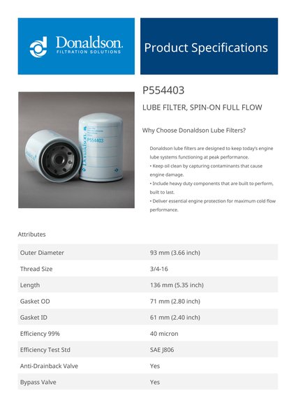 Why Choose Donaldson Lube Filters?Donaldson lube filters are designed to keep today’s engine lube systems functioning at peak performance.