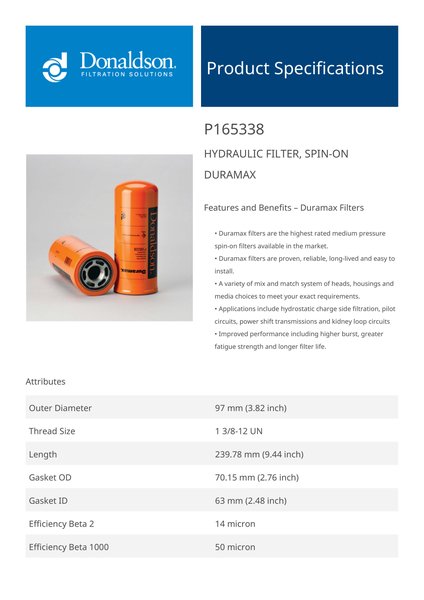 Donaldson P165338 Hydraulic Filter, Spin-On Duramax | Replaces the Carbocol 001127349