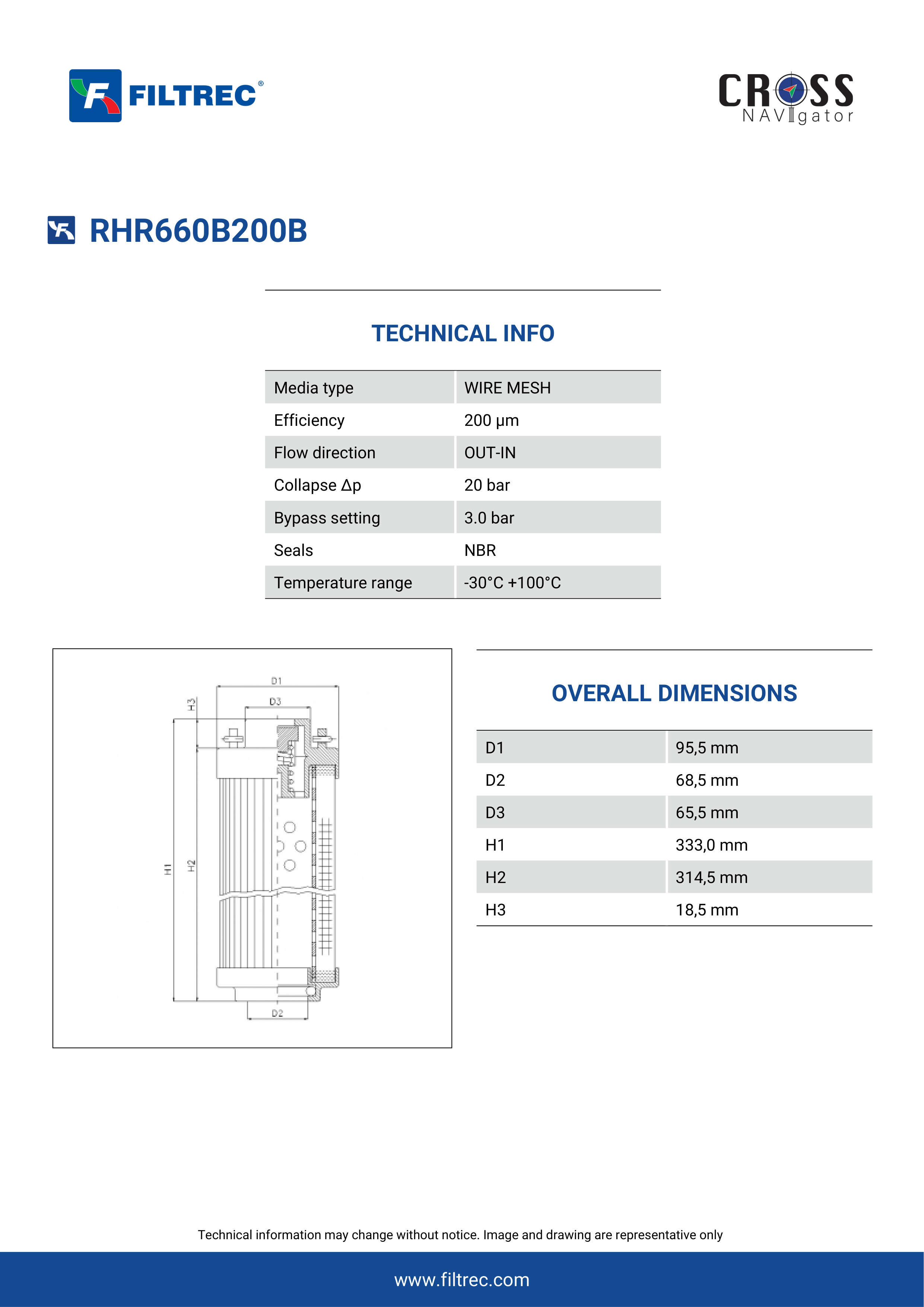 Genuine Filtrec RHR660B200B. This Filtrec element is designed to meet or exceed the quality and performance of brand OEM’s ensuring superior filtration performance and long-lasting durability.Engineered with their high performance media and a durable design, the RHR660B200B provides reliable and consistent performance over its lifespan, even in harsh operating environments. When you order from FilterFinder, you can trust that you are getting a reliable and high-quality replacement filter that will keep your system running smoothly.