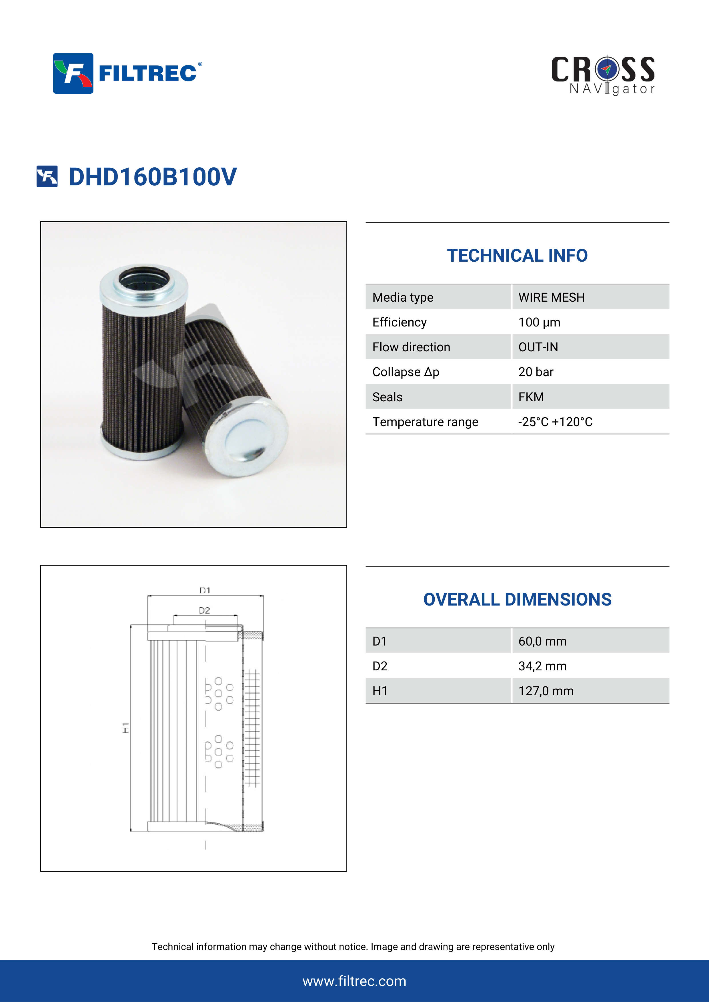 Genuine Filtrec DHD160B100V. This Filtrec element is designed to meet or exceed the quality and performance of brand OEM’s ensuring superior filtration performance and long-lasting durability.