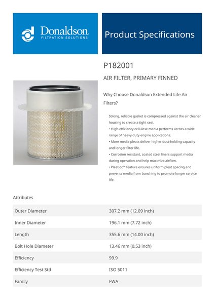 | Style | Air Filter, Primary Finned |