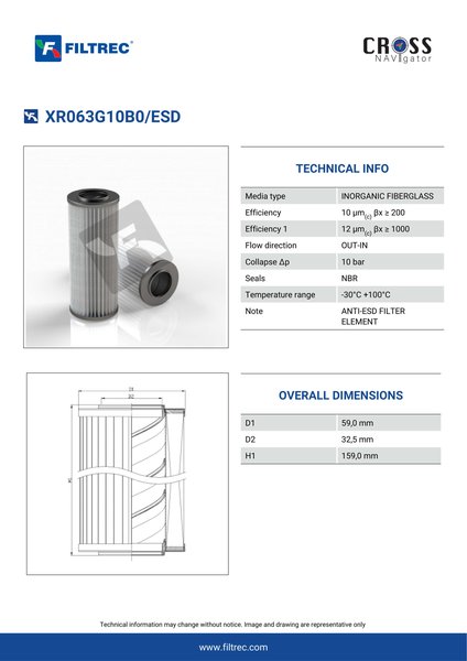 Genuine Filtrec XR063G10B0/ESD. This Filtrec element is designed to meet or exceed the quality and performance of brand OEM’s ensuring superior filtration performance and long-lasting durability.