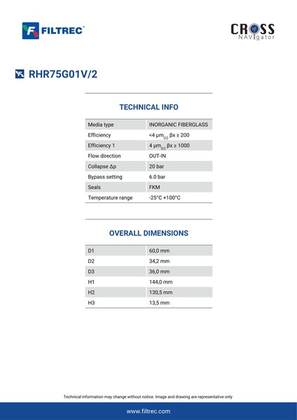 Genuine Filtrec RHR75G01V/2. This Filtrec element is designed to meet or exceed the quality and performance of brand OEM’s ensuring superior filtration performance and long-lasting durability.