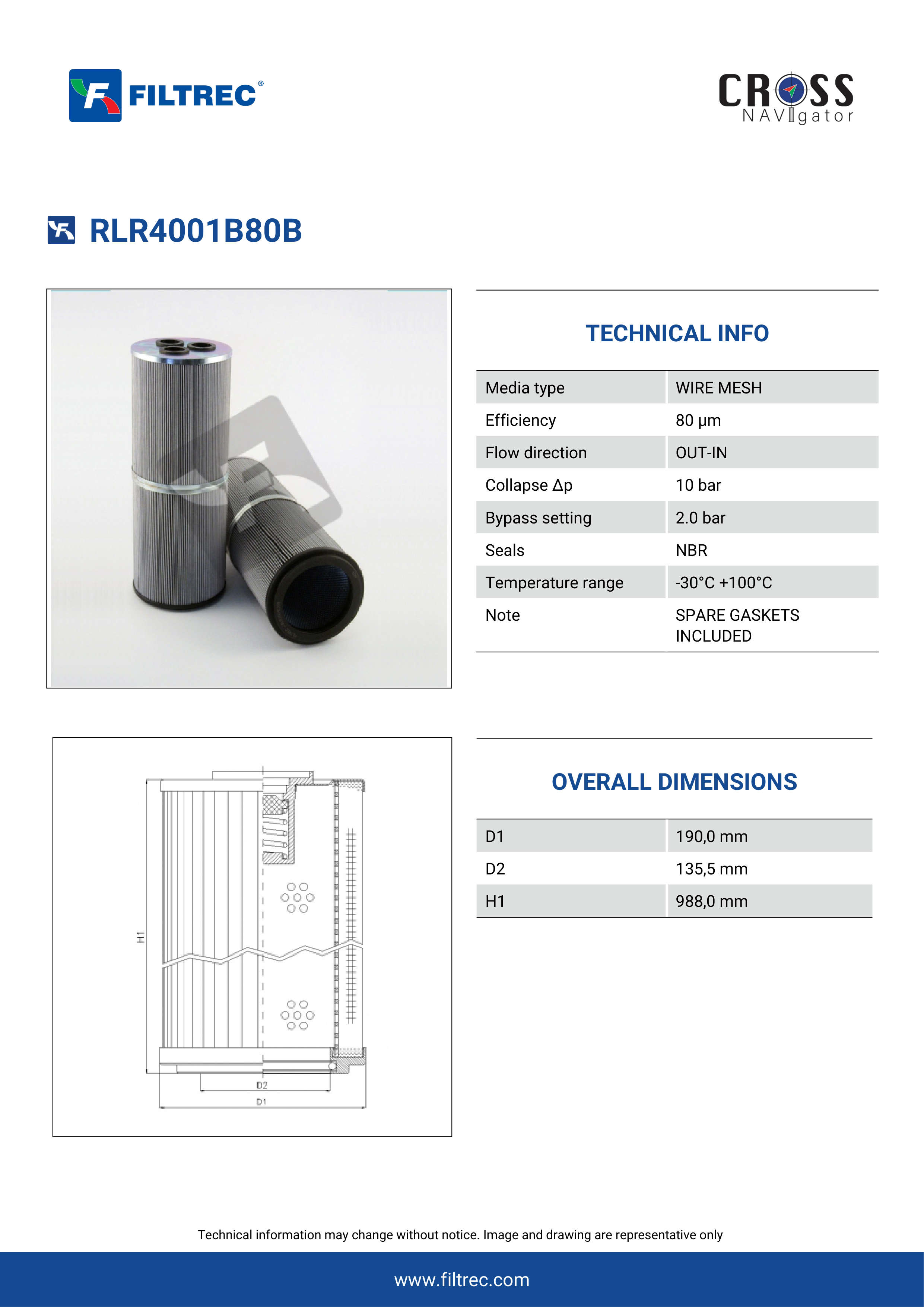 Genuine Filtrec RLR4001B80B. This Filtrec element is designed to meet or exceed the quality and performance of brand OEM’s ensuring superior filtration performance and long-lasting durability.