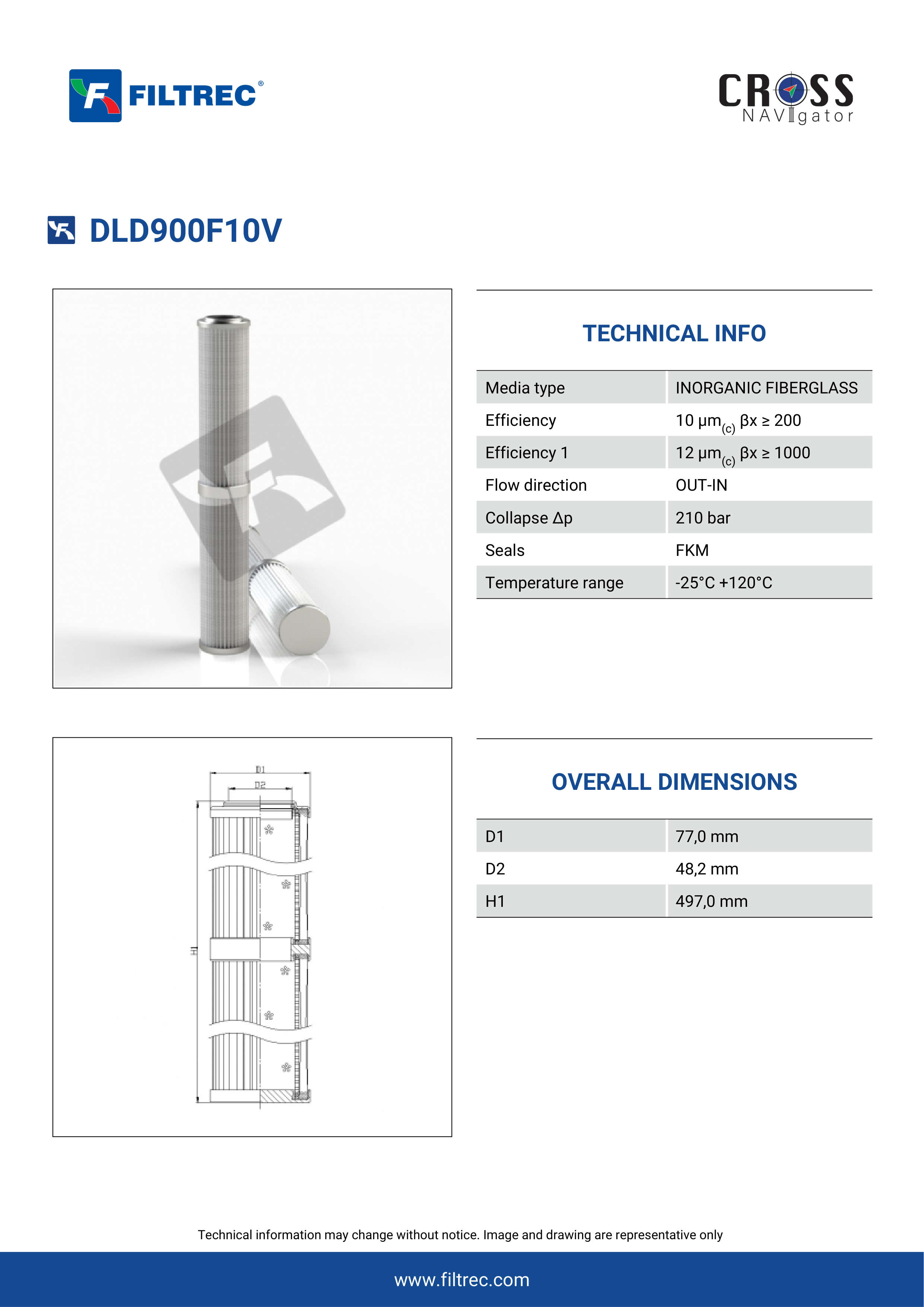 The efficiency of the element is shown using the Micron (µ) and Beta (β) ratings. The micron rating indicates the size of the particle being filtered and the beta rating the efficiency, calculated as 1/β.