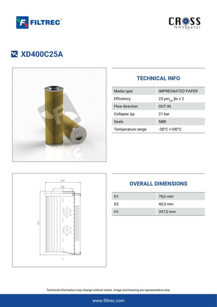 Genuine Filtrec XD400C25A. This Filtrec element is designed to meet or exceed the quality and performance of brand OEM’s ensuring superior filtration performance and long-lasting durability.