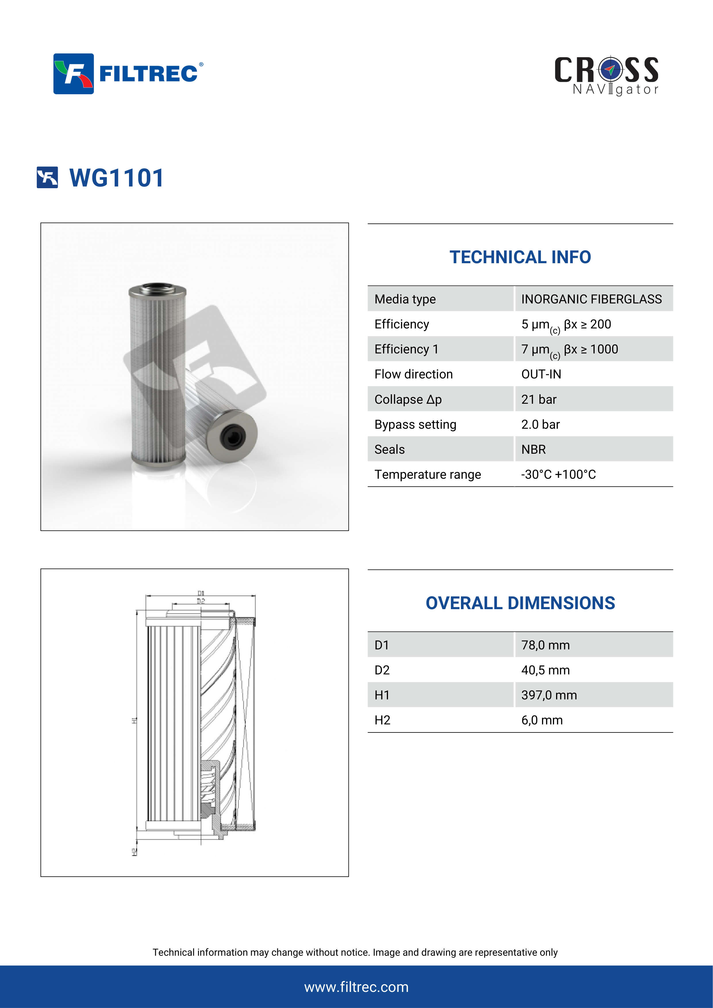 Genuine Filtrec WG1101. This Filtrec element is designed to meet or exceed the quality and performance of brand OEM’s ensuring superior filtration performance and long-lasting durability.