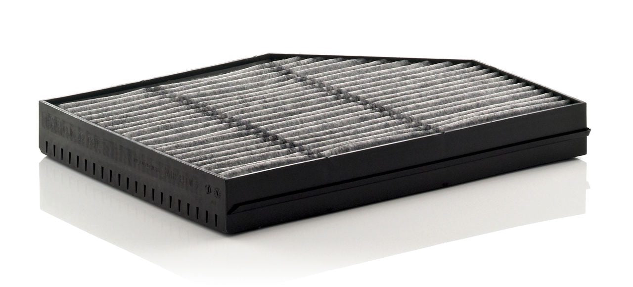 High-quality MANN-FILTER cabin filters with active carbon - nearly 100% protection from particles like pollen, diesel soot & tyre abrasion / Additional protection from harmful gases & unpleasant odour. The trated highly-effective activated carbon gives protection against harmful gases such as ozone, nitrogen oxide or sulphur dioxide and eliminates unpleasant odours during the entire service interval.