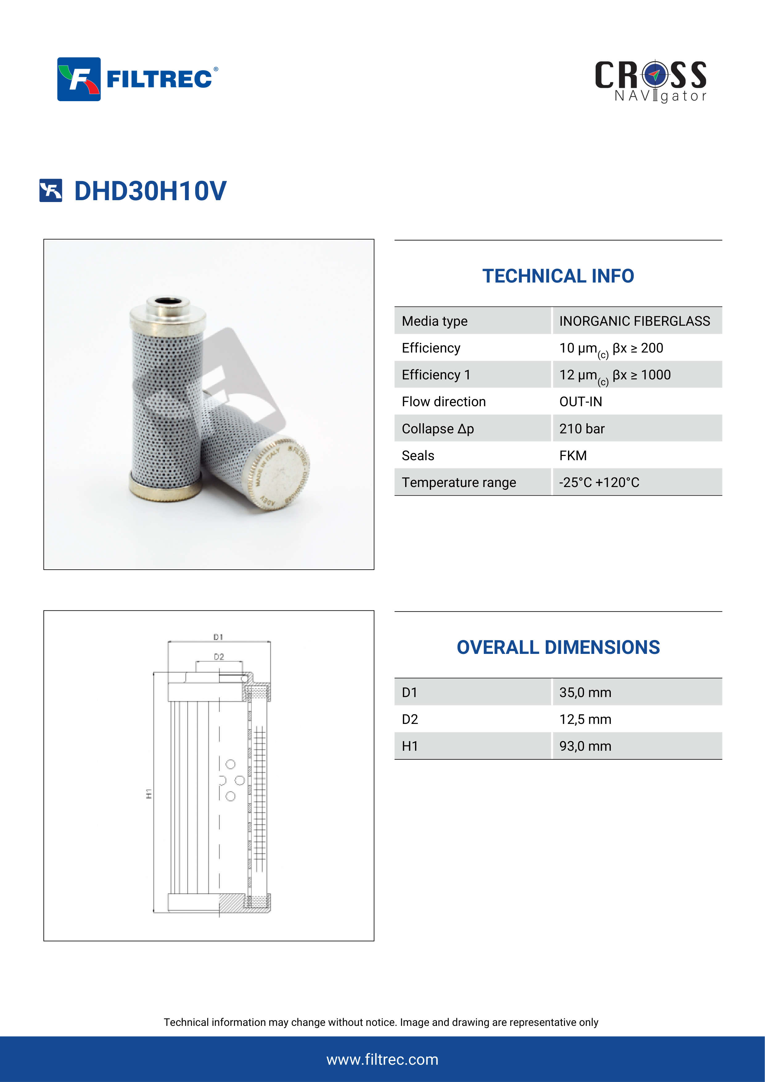 The efficiency of the element is shown using the Micron (µ) and Beta (β) ratings. The micron rating indicates the size of the particle being filtered and the beta rating the efficiency, calculated as 1/β.