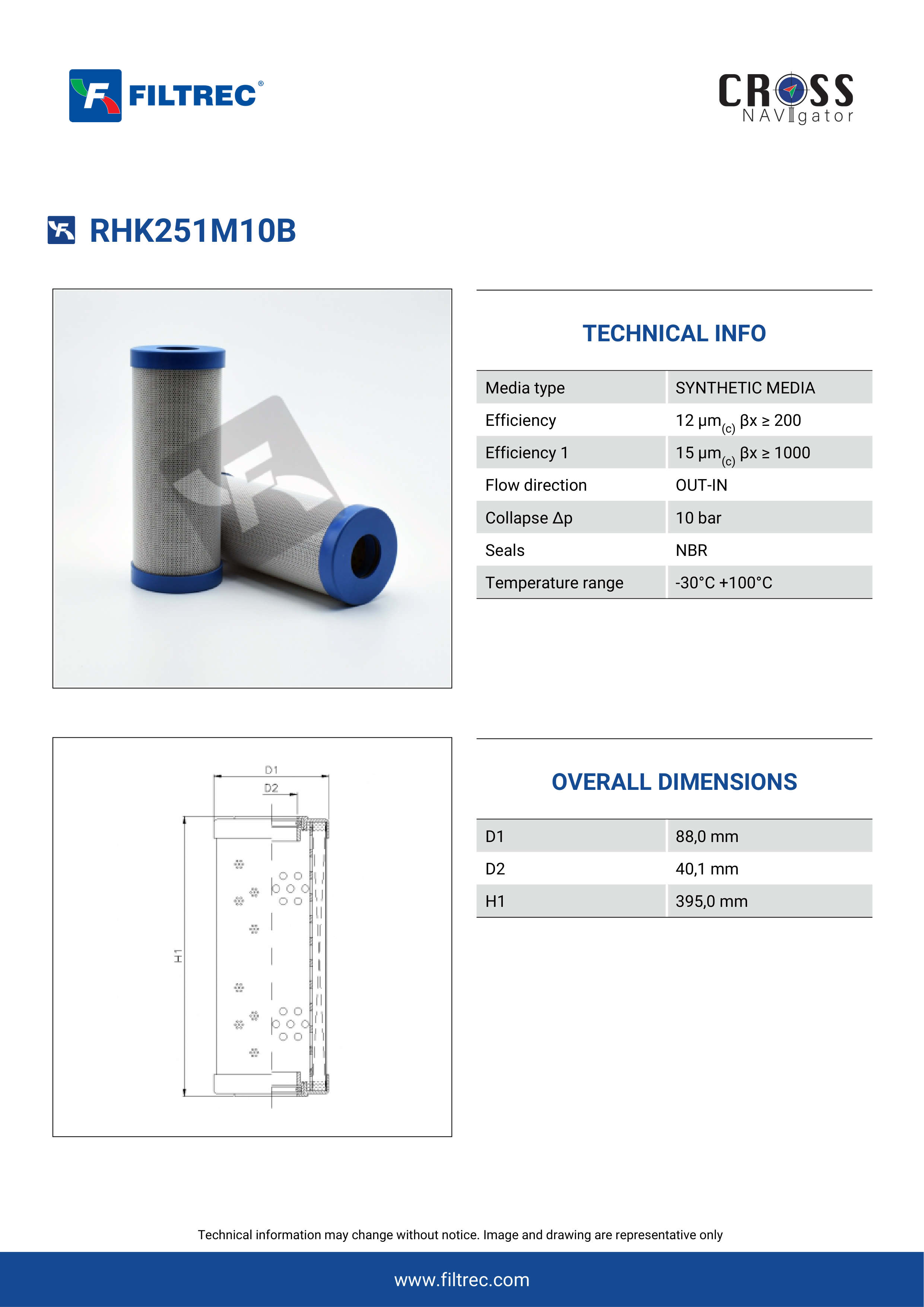 Genuine Filtrec RHK251M10B. This Filtrec element is designed to meet or exceed the quality and performance of brand OEM’s ensuring superior filtration performance and long-lasting durability.