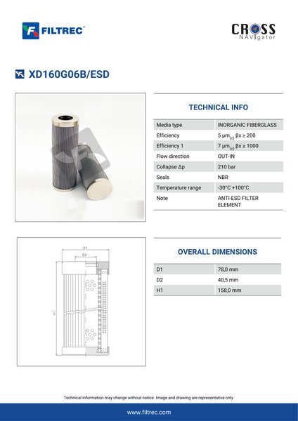 The efficiency of the element is shown using the Micron (µ) and Beta (β) ratings. The micron rating indicates the size of the particle being filtered and the beta rating the efficiency, calculated as 1/β.