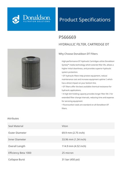 The efficiency of the element is shown using the Micron (µ) and Beta (β) ratings. The micron rating indicates the size of the particle being filtered and the beta rating the efficiency, calculated as 1/β.