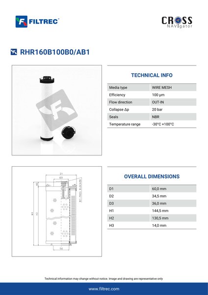 The efficiency of the element is shown using the Micron (µ) and Beta (β) ratings. The micron rating indicates the size of the particle being filtered and the beta rating the efficiency, calculated as 1/β.