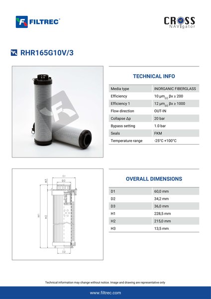 Genuine Filtrec RHR165G10V/3. This Filtrec element is designed to meet or exceed the quality and performance of brand OEM’s ensuring superior filtration performance and long-lasting durability.