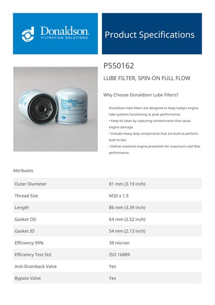 Why Choose Donaldson Lube Filters?Donaldson lube filters are designed to keep today’s engine lube systems functioning at peak performance.