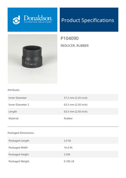 Genuine Donaldson P104090 Reducer, Rubber is engineered to deliver reliable performance and durability across a wide range of applications. Designed with high-quality materials, it ensures consistent functionality while meeting demanding operational requirements.