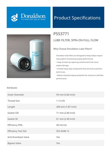 Why Choose Donaldson Lube Filters?Donaldson lube filters are designed to keep today’s engine lube systems functioning at peak performance.