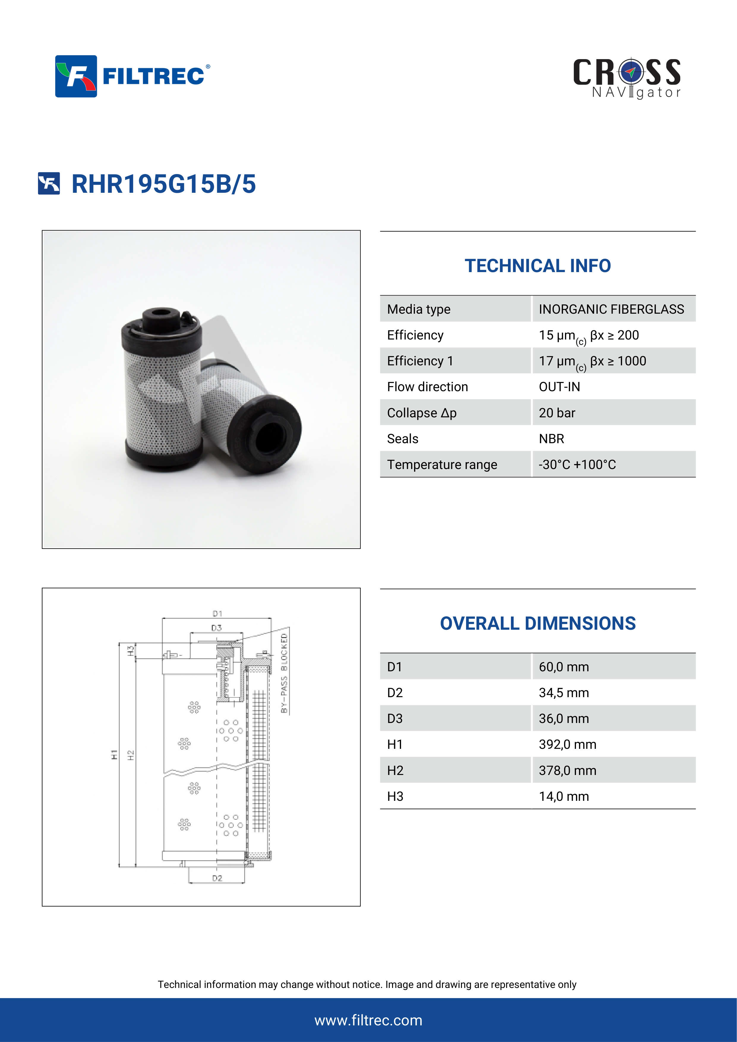Genuine Filtrec RHR195G15B/5. This Filtrec element is designed to meet or exceed the quality and performance of brand OEM’s ensuring superior filtration performance and long-lasting durability.