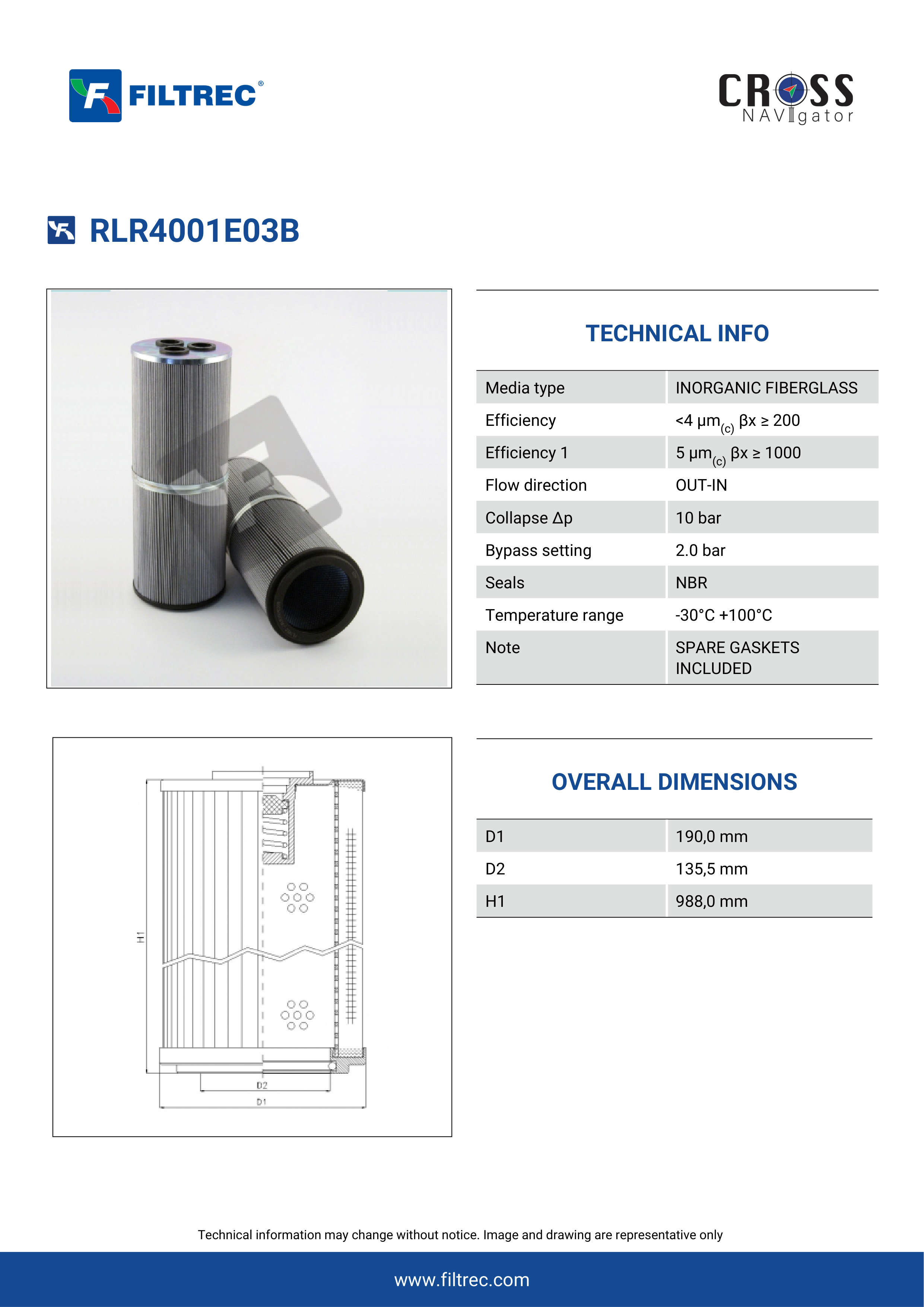 Genuine Filtrec RLR4001E03B. This Filtrec element is designed to meet or exceed the quality and performance of brand OEM’s ensuring superior filtration performance and long-lasting durability.