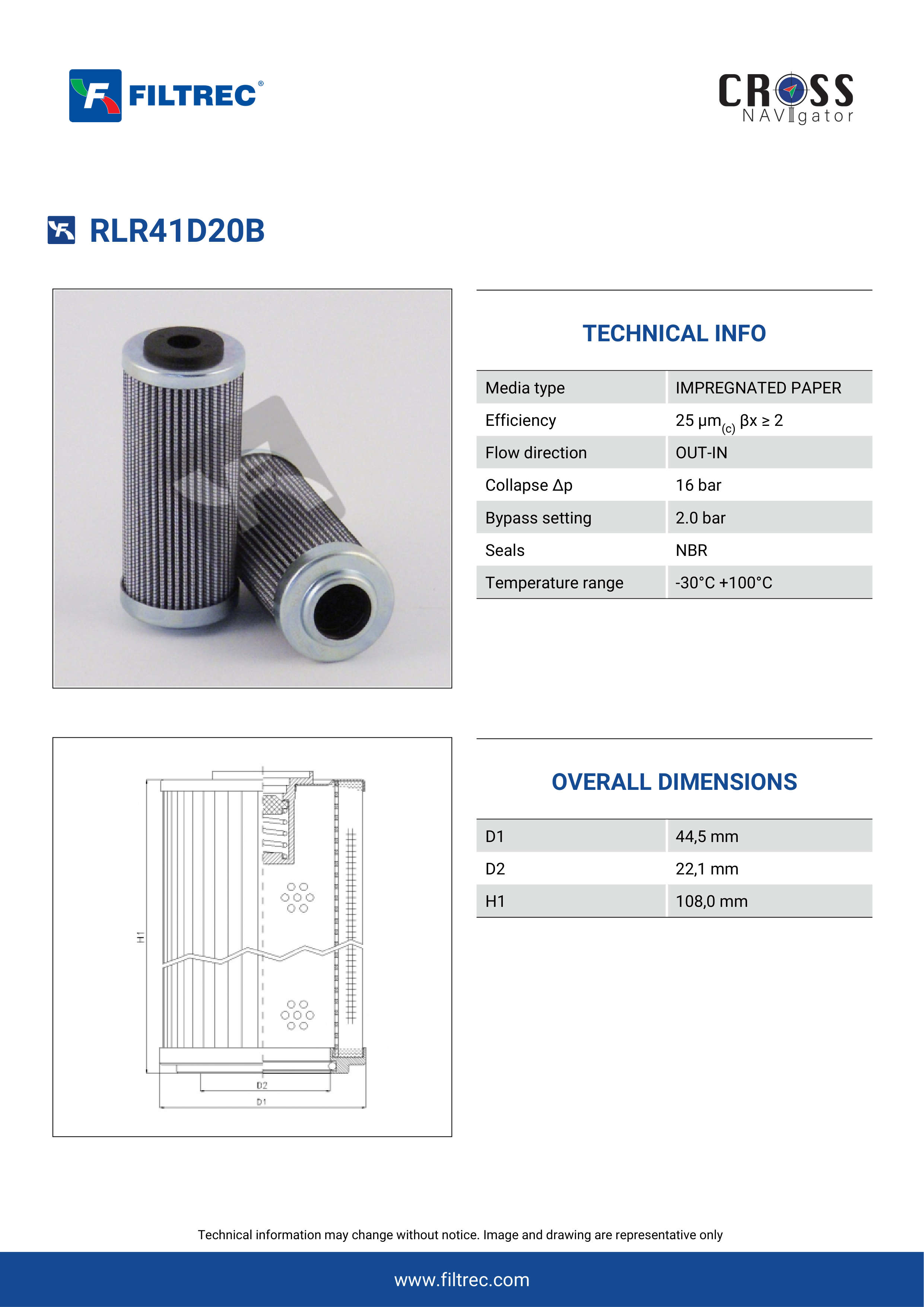 Genuine Filtrec RLR41D20B. This Filtrec element is designed to meet or exceed the quality and performance of brand OEM’s ensuring superior filtration performance and long-lasting durability.