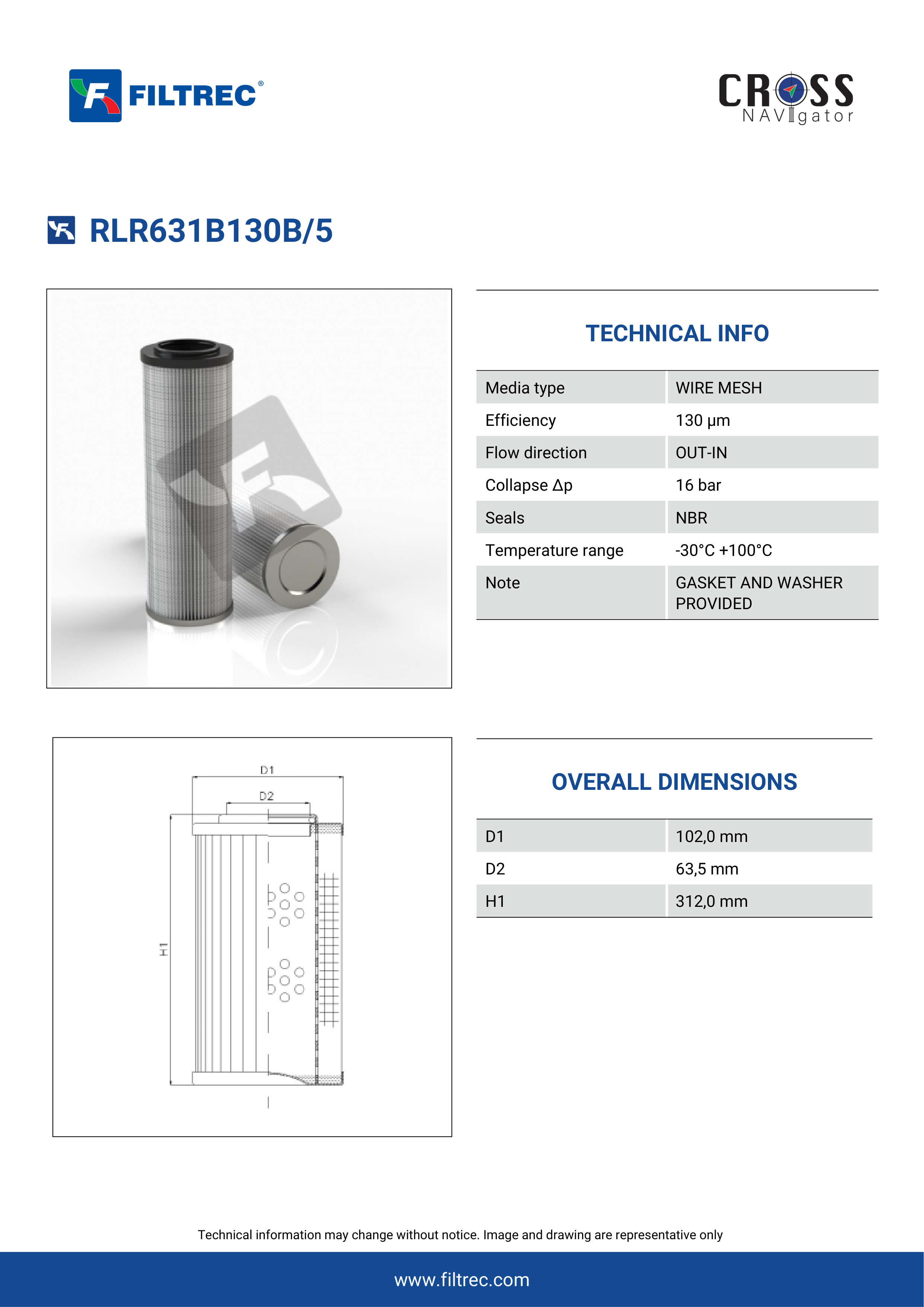 Genuine Filtrec RLR631B130B/5. This Filtrec element is designed to meet or exceed the quality and performance of brand OEM’s ensuring superior filtration performance and long-lasting durability.