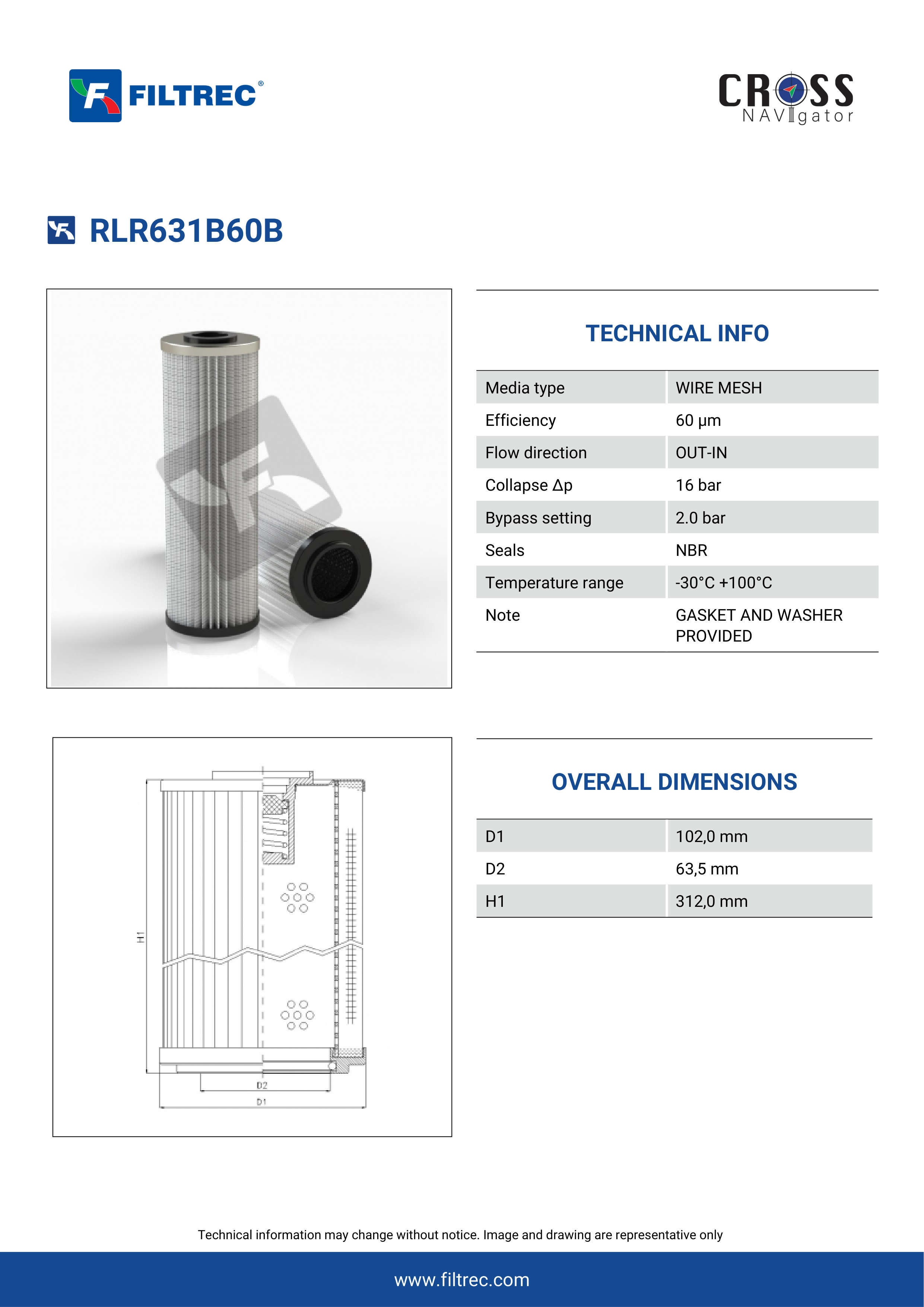 Genuine Filtrec RLR631B60B. This Filtrec element is designed to meet or exceed the quality and performance of brand OEM’s ensuring superior filtration performance and long-lasting durability.