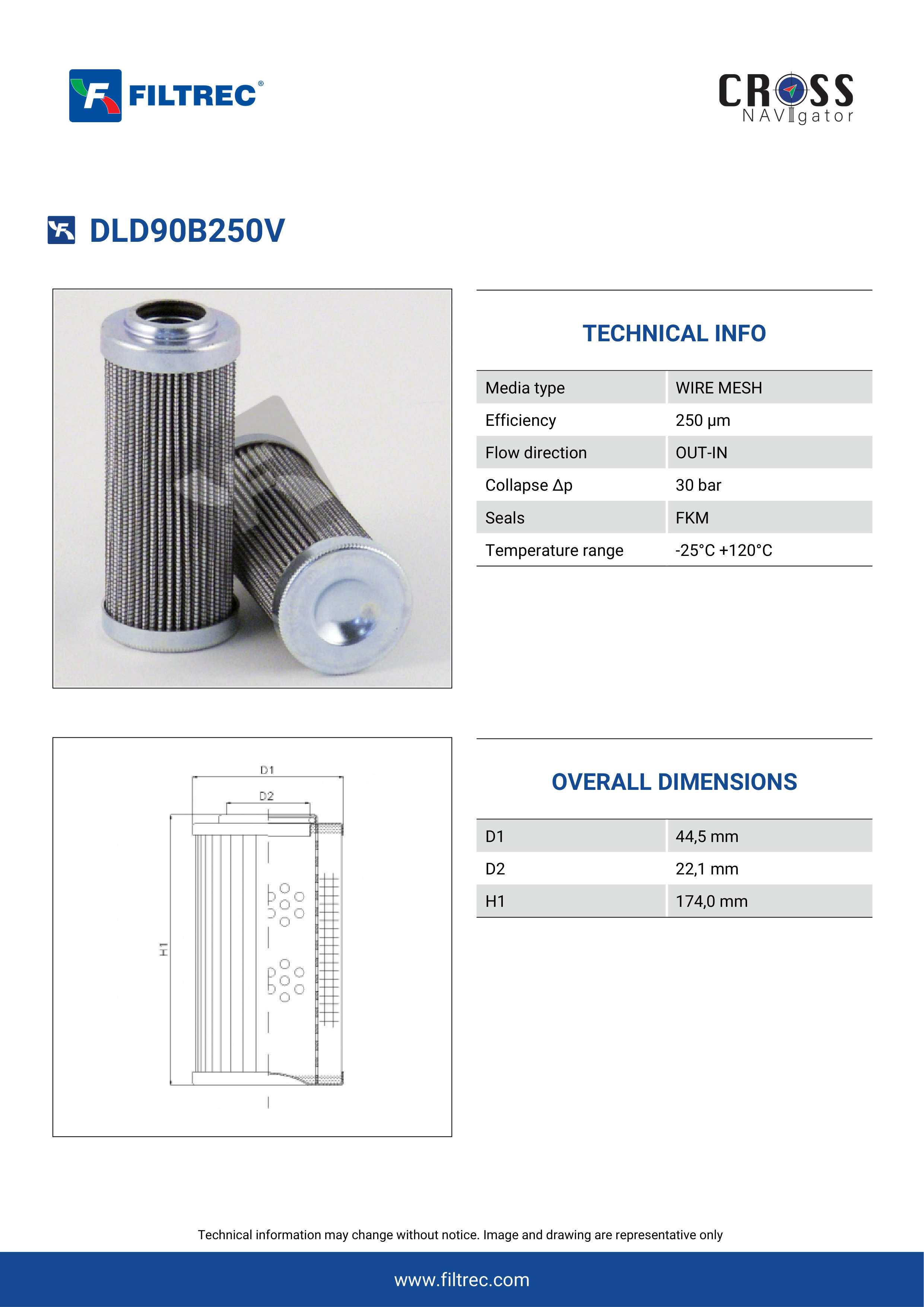 Genuine Filtrec DLD90B250V. This Filtrec element is designed to meet or exceed the quality and performance of brand OEM’s ensuring superior filtration performance and long-lasting durability.