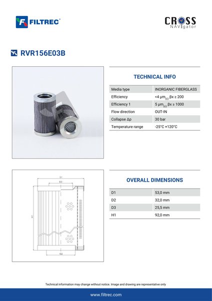 The efficiency of the element is shown using the Micron (µ) and Beta (β) ratings. The micron rating indicates the size of the particle being filtered and the beta rating the efficiency, calculated as 1/β.