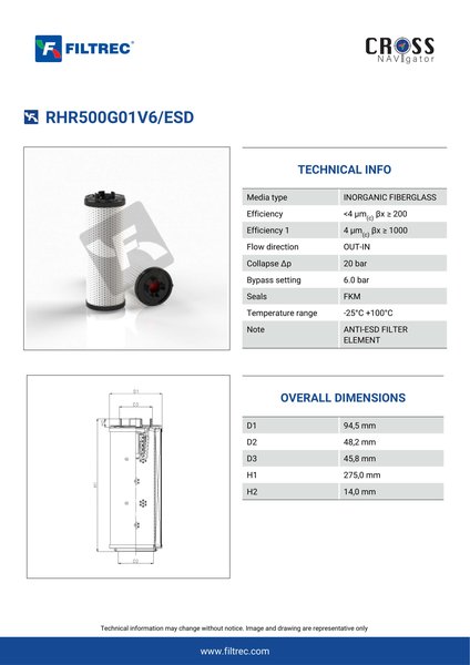 The efficiency of the element is shown using the Micron (µ) and Beta (β) ratings. The micron rating indicates the size of the particle being filtered and the beta rating the efficiency, calculated as 1/β.