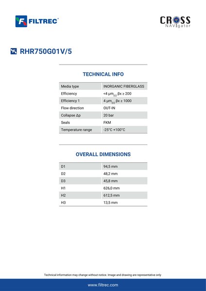Genuine Filtrec RHR750G01V/5. This Filtrec element is designed to meet or exceed the quality and performance of brand OEM’s ensuring superior filtration performance and long-lasting durability.