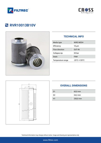 Genuine Filtrec RVR10013B10V. This Filtrec element is designed to meet or exceed the quality and performance of brand OEM’s ensuring superior filtration performance and long-lasting durability.