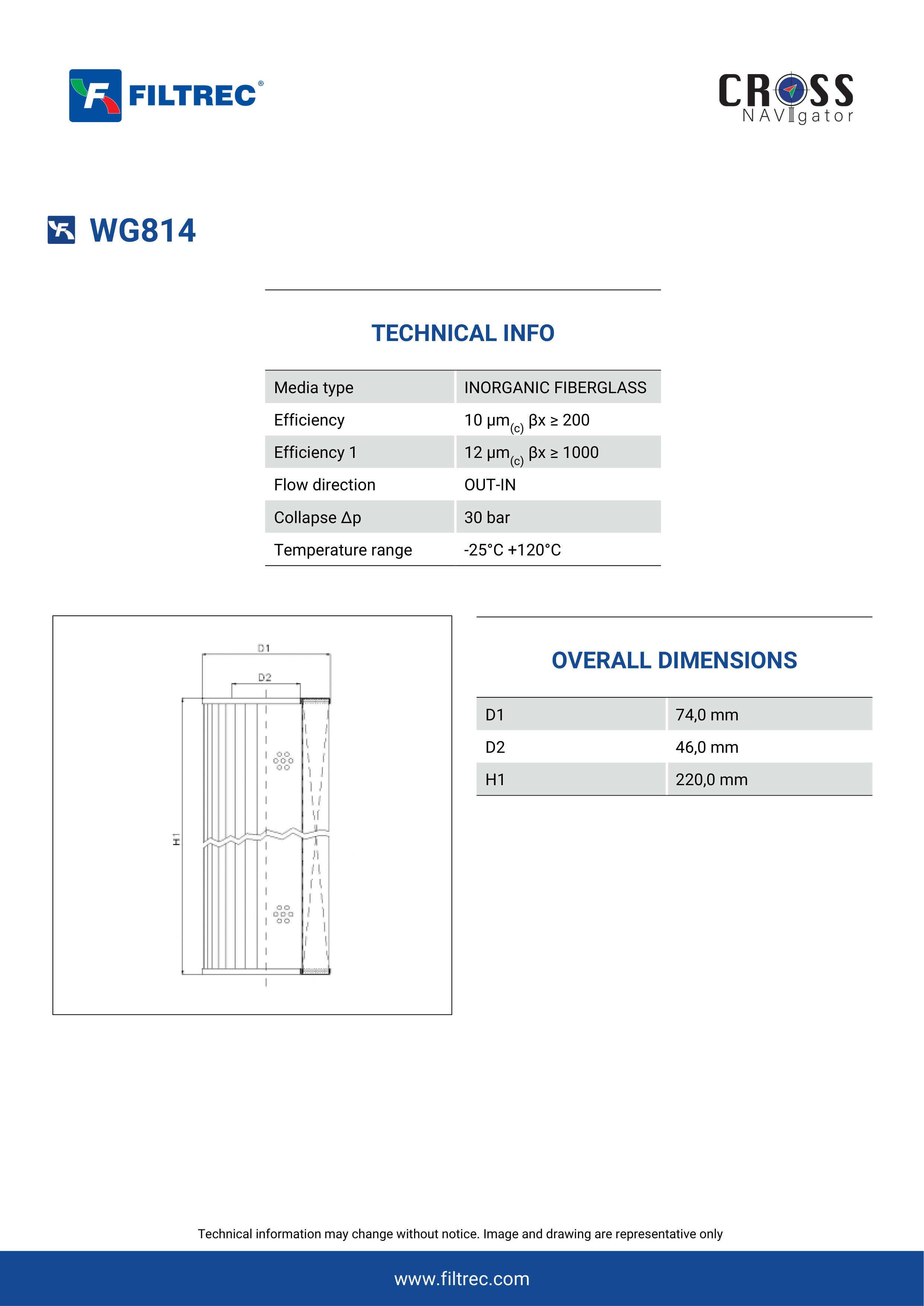 The efficiency of the element is shown using the Micron (µ) and Beta (β) ratings. The micron rating indicates the size of the particle being filtered and the beta rating the efficiency, calculated as 1/β.