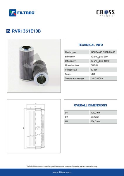 Engineered with their high performance media and a durable design, the RVR1361E10B provides reliable and consistent performance over its lifespan, even in harsh operating environments. When you order from FilterFinder, you can trust that you are getting a reliable and high-quality replacement filter that will keep your system running smoothly.