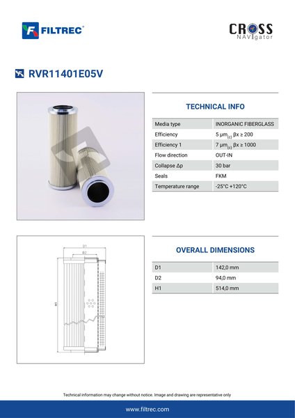 The efficiency of the element is shown using the Micron (µ) and Beta (β) ratings. The micron rating indicates the size of the particle being filtered and the beta rating the efficiency, calculated as 1/β.